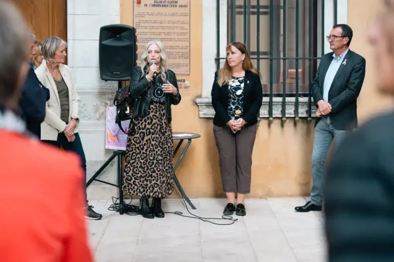 S’en est suivie une conférence autour du tatouage post mastectomie en présence des élus.