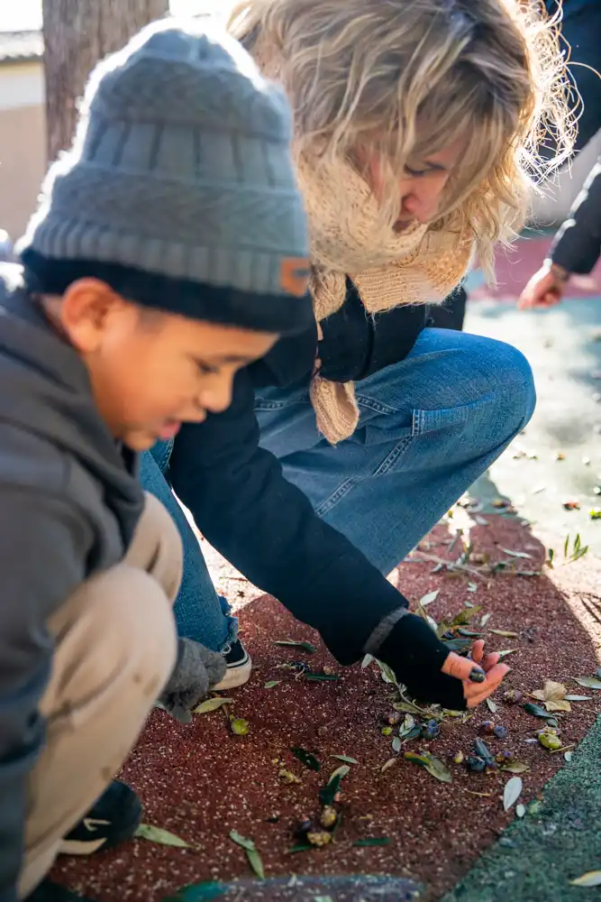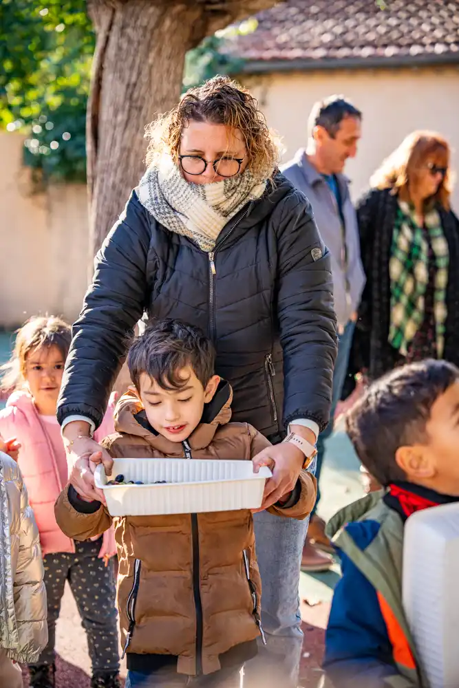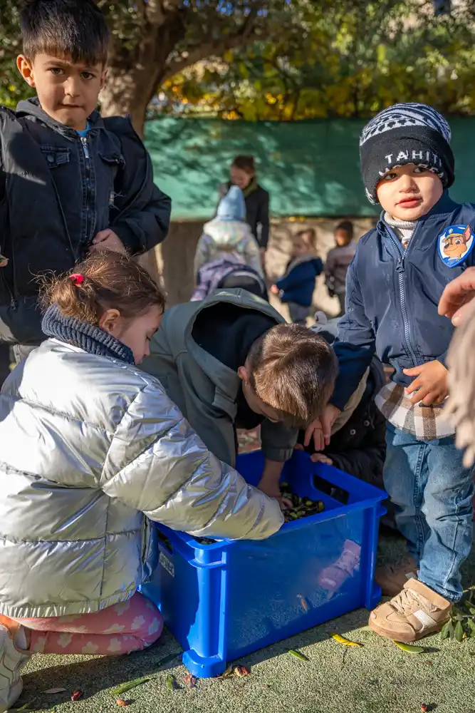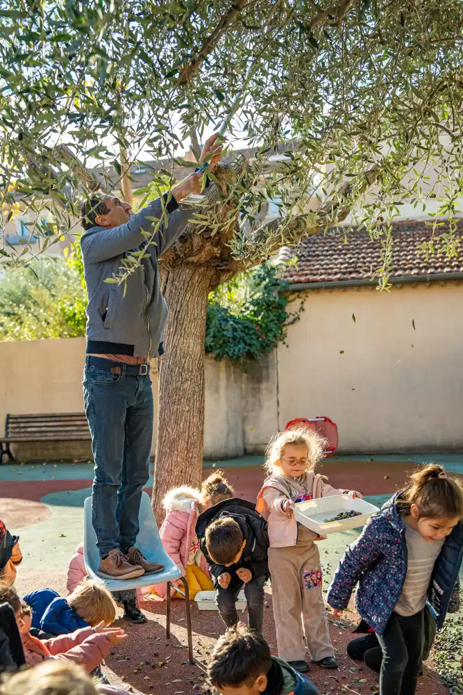 Les élèves de l’école maternelle Louis Pasteur cueillent les olives de la cour ce 20 novembre.