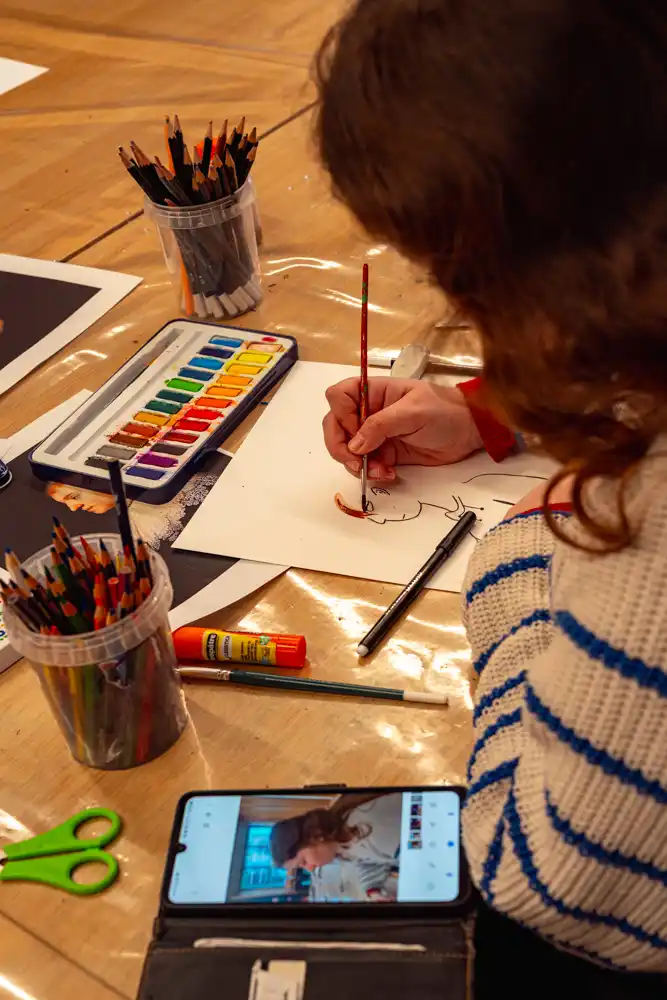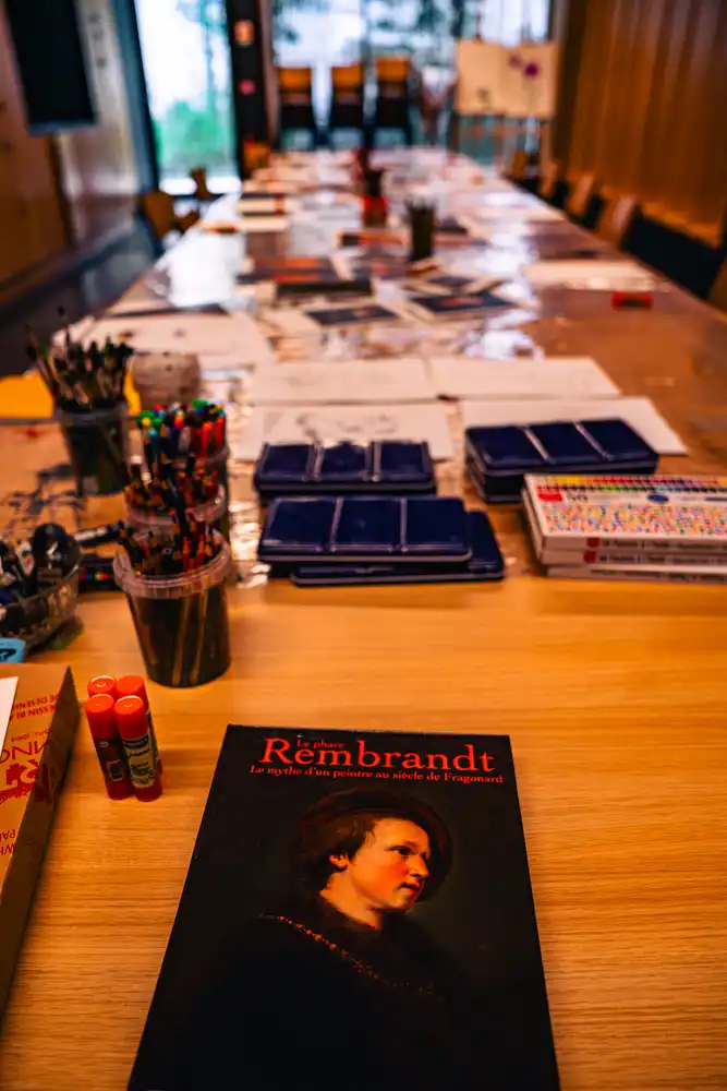Les participants se sont inspirés des œuvres présentes au sein de l’exposition Le Phare Rembrandt avant de s’essayer à diverses activités : autoportraits, collages, dessins, etc. Chacun a pu repartir avec sa création.