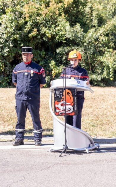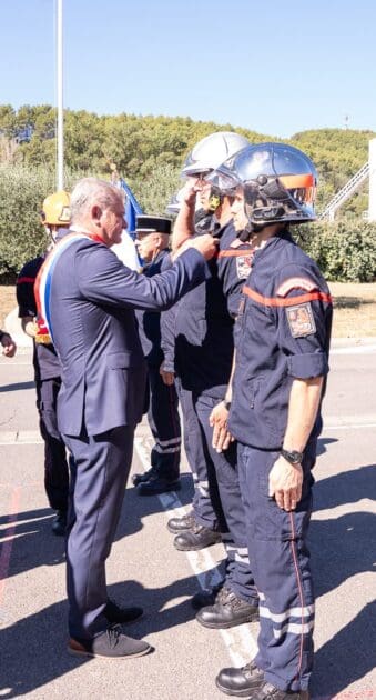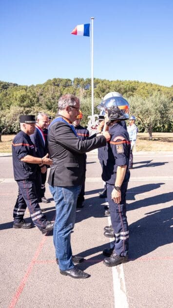 Cette cérémonie s’est tenue en présence du capitaine Michel MARIA, chef du Centre d’intervention et de secours de Draguignan, de Myriam Garcia, sous-préfète de l’arrondissement de Draguignan, de Richard Strambio, maire de Draguignan, président de Dracénie Provence Verdon agglomération, conseiller régional Sud Provence-Alpes-Côte d’Azur, de Jean-Yves Fort, adjoint délégué à la sécurité, de Grégory Loew, adjoint municipal et conseiller départemental, des élus et des sapeurs-pompiers.