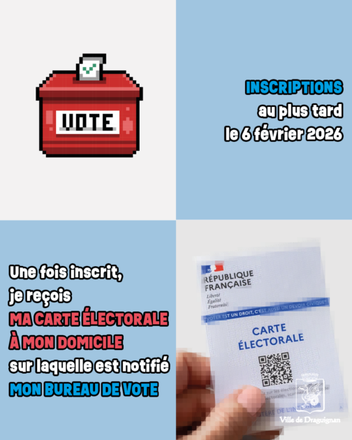 Les 15 et 22 mars 2026 se tiendront les élections municipales. Pour pouvoir voter à Draguignan, il vous faut :