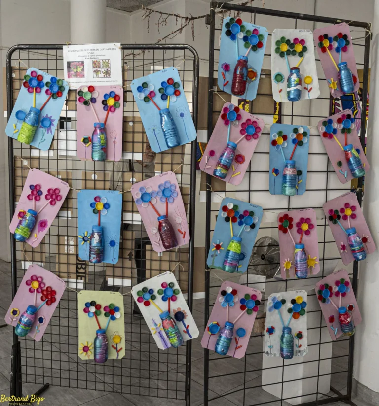 Les enseignants de l’école maternelle Louis Pasteur ont souhaité réaliser une exposition autour du thème du développement durable. En effet, cette école est engagée depuis de nombreuses années dans une démarche d’amélioration de son impact sur l’environnement. Cette année, ils ont souhaité obtenir le label E3D (école en démarche de développement durable) de niveau 3. Pour cela, ils doivent ouvrir leurs idées, leurs créations, leurs actions vers l’extérieur de l’école. Ainsi, cette exposition a été pour eux une possibilité de recycler des éléments plastiques mais aussi des tissus et autres matériaux pour leur donner une deuxième vie, une vie artistique qui sera montrée à tous les visiteurs passant dans la galerie des Caboch’arts (9 rue de Trans à Draguignan).