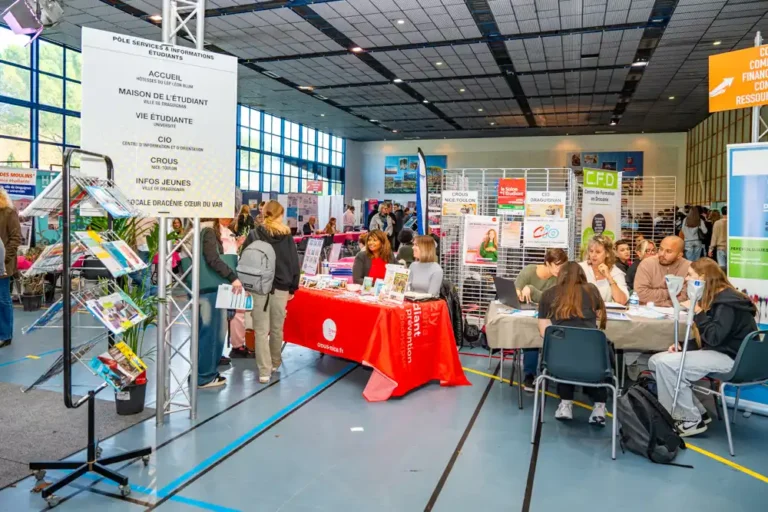 Plus d’une centaine de stands répartis entre une dizaine de pôles thématiques vous présentent leurs diverses formations pour vous apporter des réponses sur les études possibles après le bac.