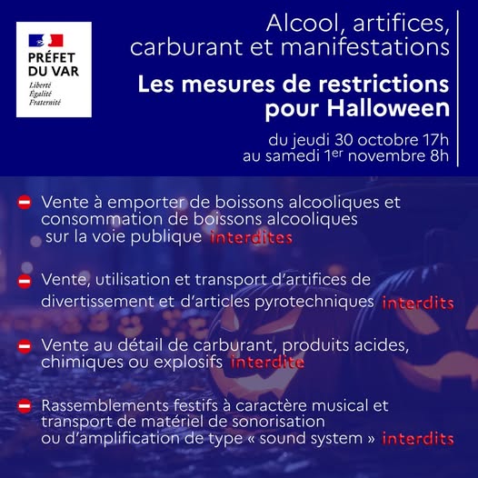 ℹ Les arrêtés préfectoraux 👉https://www.var.gouv.fr/…/Les-interdictions-pour-Halloween