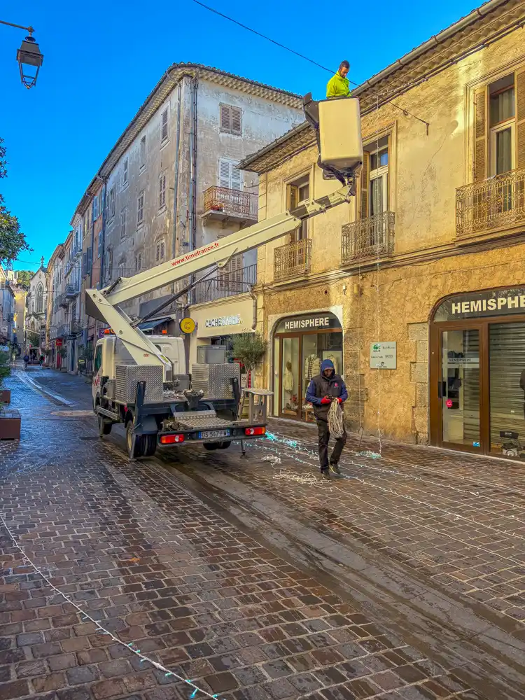 Depuis plusieurs semaines, les services techniques de la Ville mettent en place les illuminations de Noël en centre-ville.