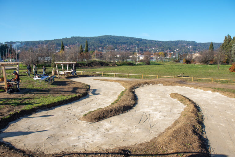 Afin de mettre en place cette activité, les services techniques de la ville ont réalisé une clôture en bois délimitant la piste, installé du mobilier, dont des tables et des poubelles de tri, et planté des végétaux. L’association, quant à elle, a créé la piste dédiée au modélisme.