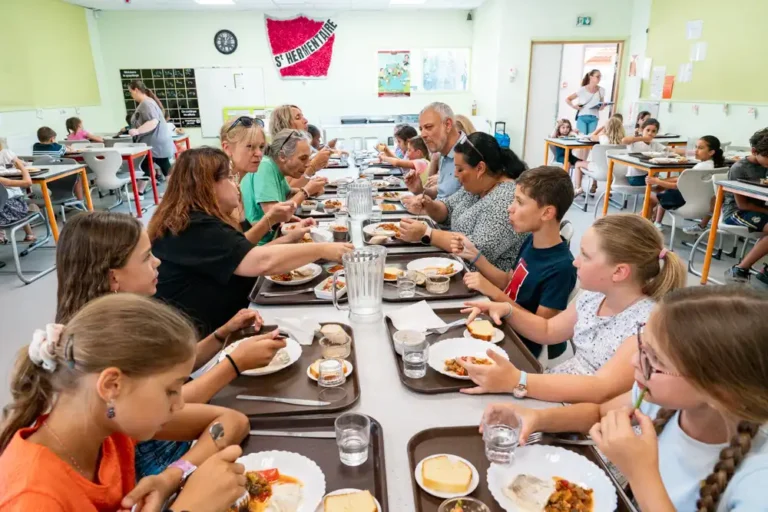 Ce moment a également été l’occasion d’organiser un temps d’échange, afin de répondre au mieux aux questions des parents. Pour ce faire, la responsable clientèle de la cuisine centrale, la coordinatrice du personnel périscolaire, la coordinatrice du personnel des écoles et la référente du service Affaires scolaires sont présentes lors de ce service et partagent ce repas.