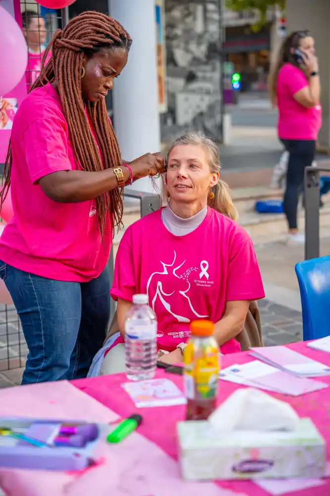 En soutien aux femmes atteintes d’un cancer du sein, les commerçants habillent leur vitre en rose, tout comme la Tour de l’Horloge et le centre Joseph Collomp, et les boulangeries participantes ont reçu des sacs à pain à l’effigie d’Octobre rose.