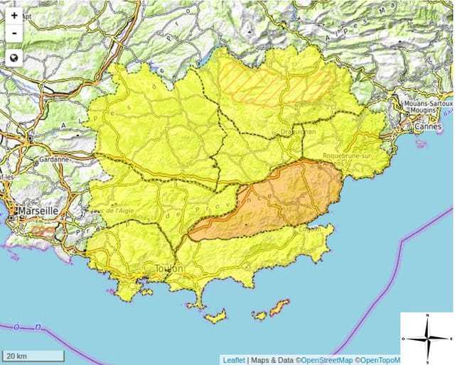 🟠Le massif des Maures est en risque🔥 SÉVÈRE➡️son accès est déconseillé.
