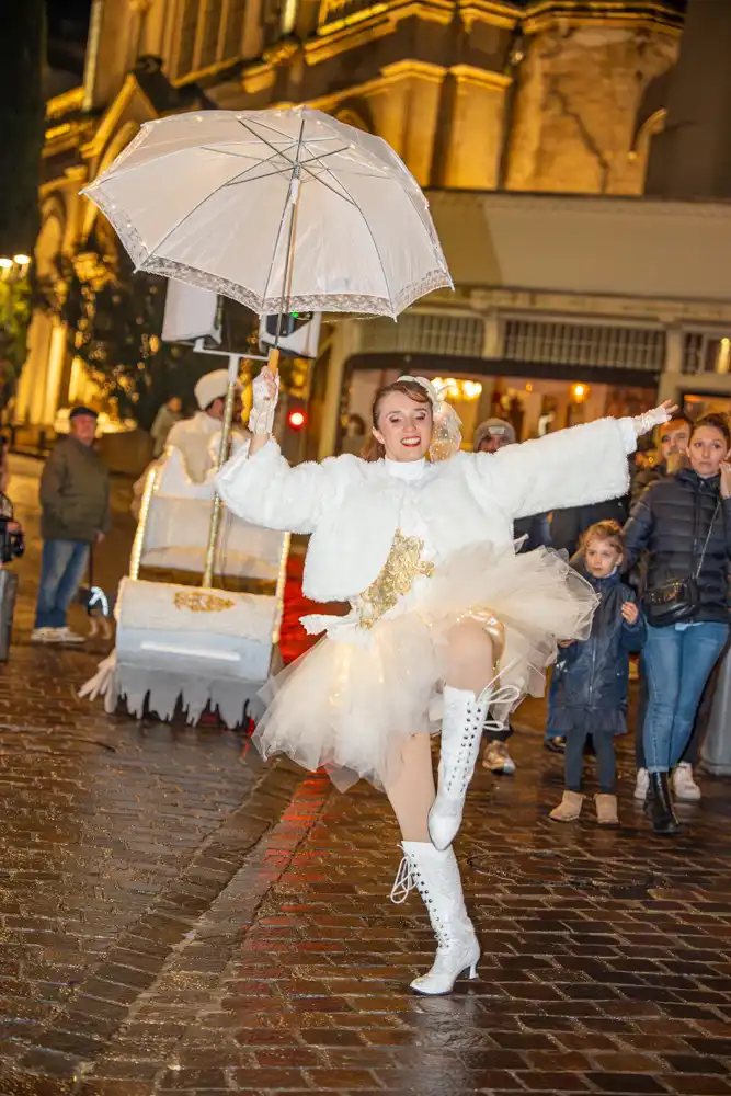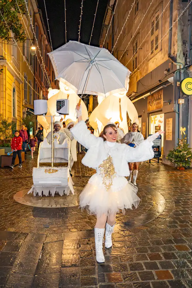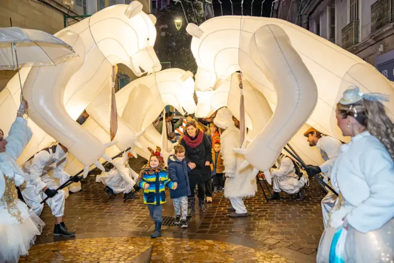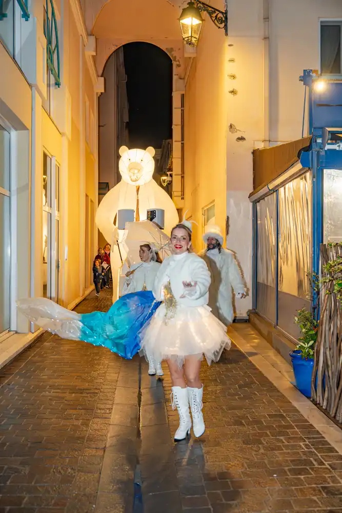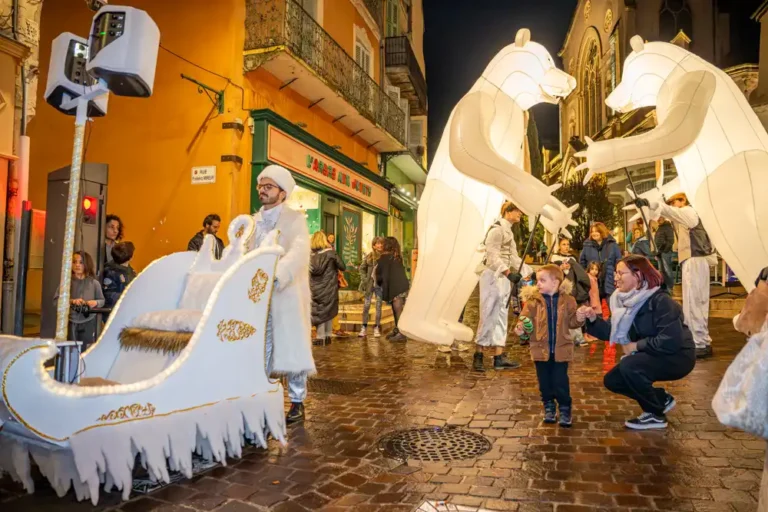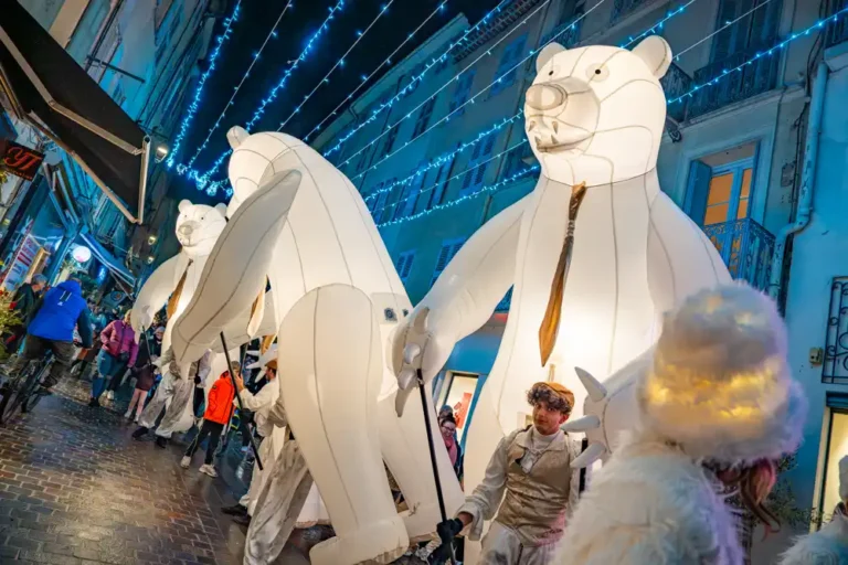 Tous les petits ont eu leur ballon sculpté par Anthony sur la place Cassin, avant d’admirer en famille la parade féérique des montreurs d’ours. Petits et grands ont plongé dans une atmosphère féerique, observant un homme dialoguer avec une horde d’ours lumineux.