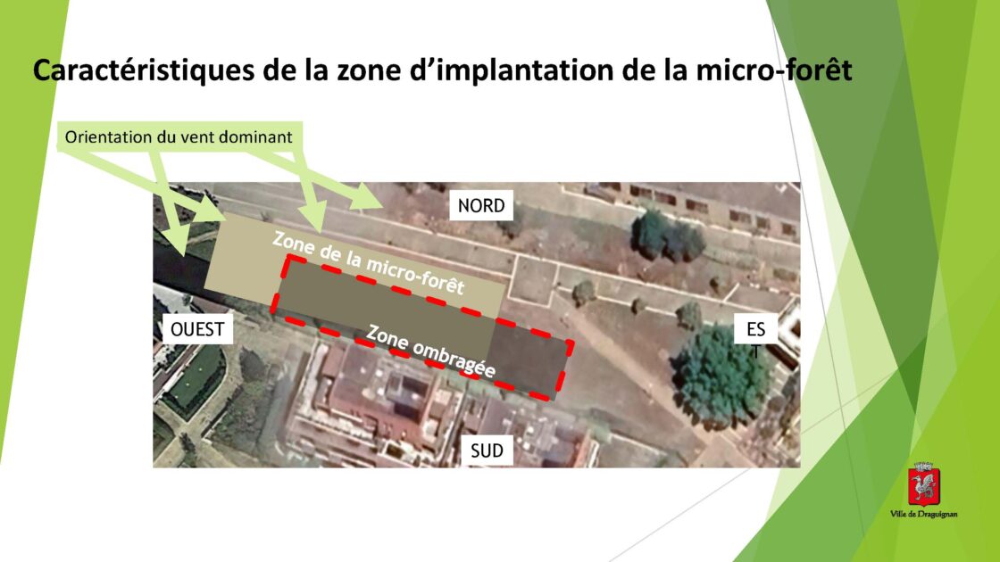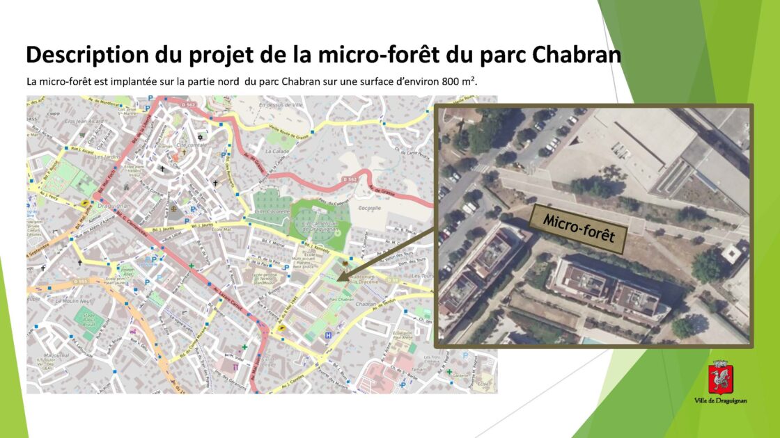 La micro-forêt est implantée sur la partie nord du parc Chabran sur une surface d’environ 800 m².