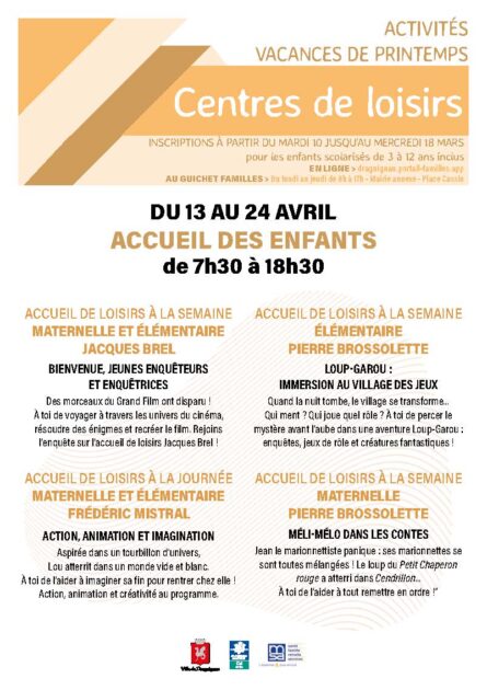 Public : tous les enfants, de 3 à 12 ans, domiciliés à Draguignan peuvent s’y inscrire dans la limite du nombre de places disponibles.