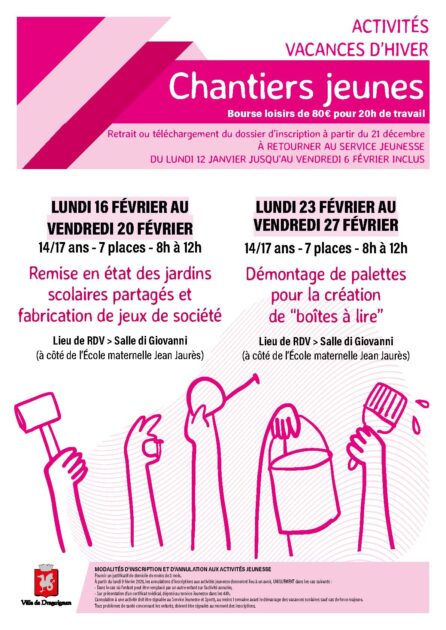 Téléchargez le programme et le formulaire d’inscription des chantiers jeunes dans le cadre des activités des vacances d’hiver :