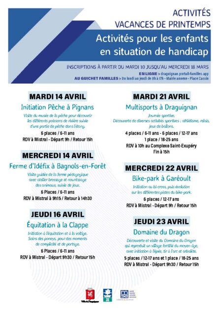 La ville de Draguignan mène une politique volontariste afin de rendre accessible l’ensemble de ses activités aux enfants en situation de handicap (jeunesse et sports, centres de loisirs).