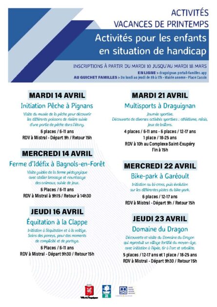 Les inscriptions se font sur https://www.ville-draguignan.fr/mes-demarches/activites-jeunesse/inscription-aux-activites/