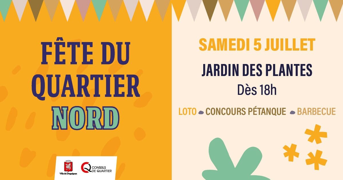 Les samedi 5 et dimanche 6 juillet au Jardin des plantes, participez à la fête du quartier Nord ! Infos et programme sur : https://agenda.ville-draguignan.fr/evenements/fete-du-quartier-nord/ En raison de la tenue de cette animation, le stationnement sera interdit et considéré comme gênant et la circulation sera interdite sur le parking du jardin des plantes, du vendredi … Lire plus